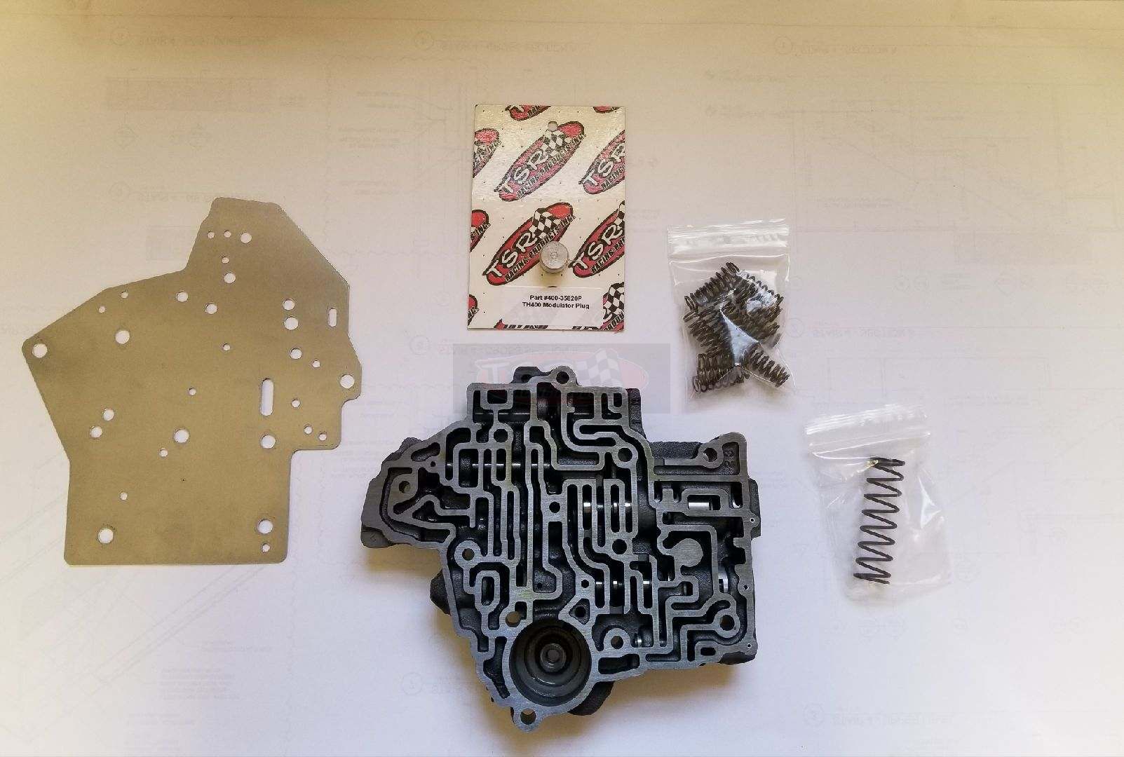 TH-400 Reverse Pattern Full Manual Valve Body Includes Separator Plate Pressure Spring Direct Springs and Modulator Plug